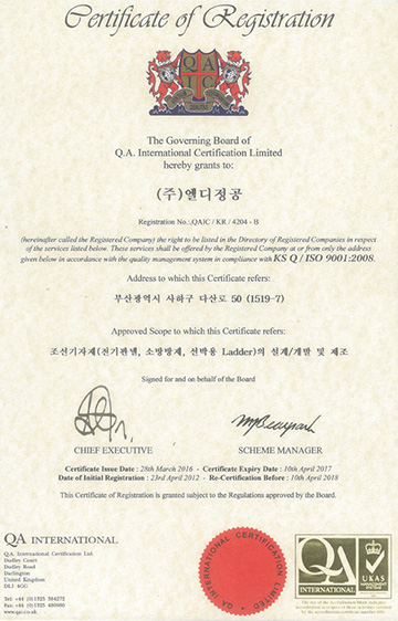 품질경영시스템 ISO 9001 : 2008 인증서
